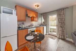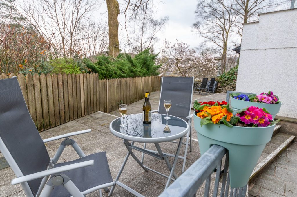 The peaceful outside sitting area, with patio table and chairs, is within earshot of the Ghyll below. The position is such that there is a degree of privacy along with the wonderful tree lined views of the gardens. For the tranquillity of a Lakeland setting in a smaller apartment, Jasmine is ideal
